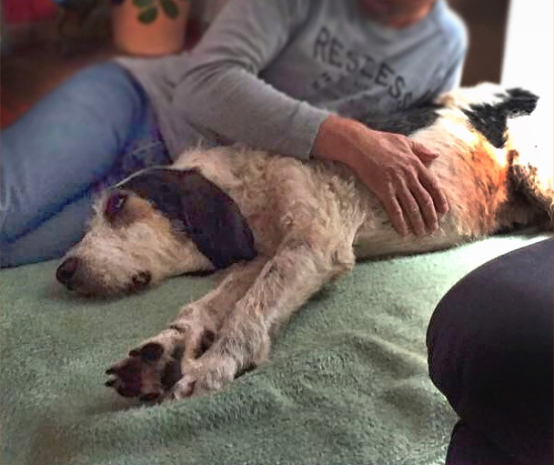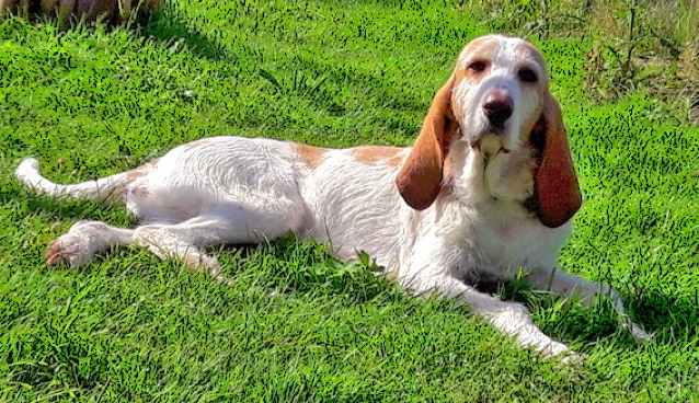 Da stand: „Angelo, eine Lebenserwartung von 3-6 Monaten“. Wieder und wieder las ich den Text. – Wir hatten bereits in der Vergangenheit zwei alte Ariegeois bei uns aufgenommen. Wir sagten zu, Angelo bei uns aufzunehmen. Noch am Montag, am späten Nachmittag dann die Nachricht, dass Angelo eigentlich eine Angelina ist. So what, sagten wir uns, egal ob Angelo oder Angelina, der Hund darf zu uns kommen. Es war eine kurze Nacht von gestern zu heute, 20. zu 21. Juli, denn kurz vor Mitternacht traf unser neues Familienmitglied, Angelina, bei uns ein.